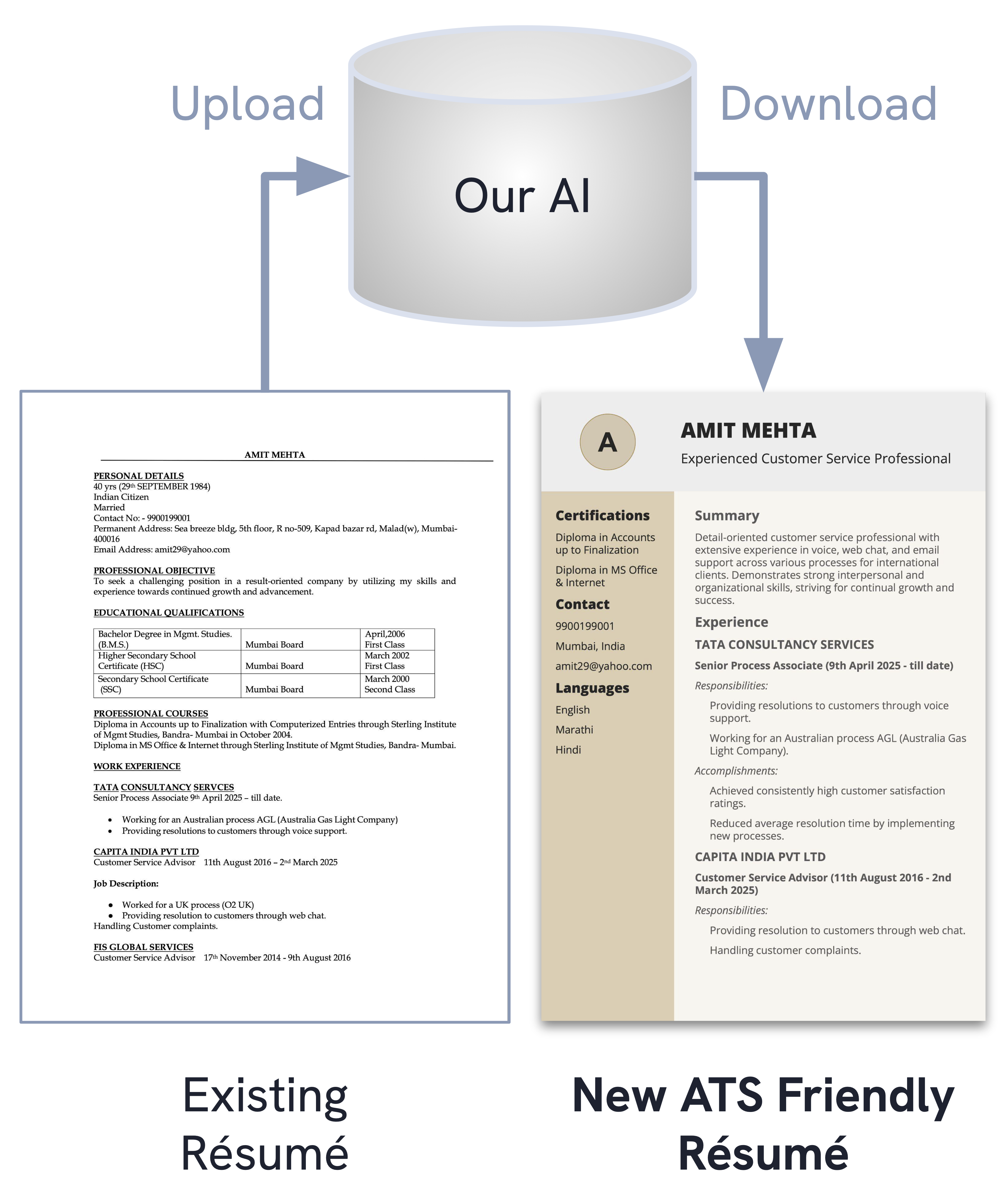 Formatting isn’t enough. To get interview calls, your résumé must be ATS-friendly. Our AI makes it so in a minute — upload, review for free, and download for if you like.